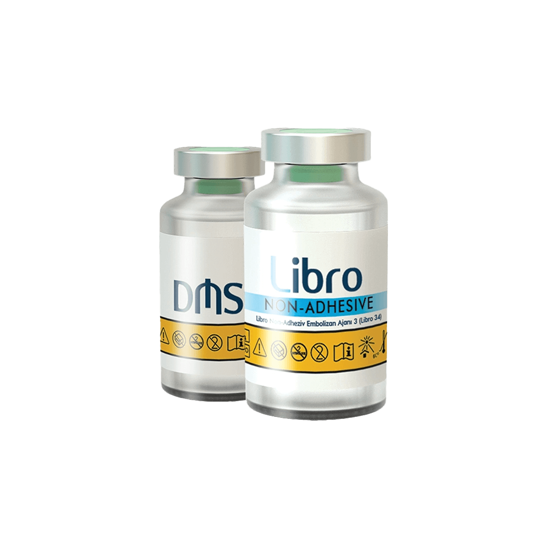 La embolización no adhesiva Libro (DMSO, EVOH) es un agente embólico líquido no adhesivo indicado para el tratamiento de Malformaciones Arteriovenosas (MAV) cerebrales. Está formulado con EVOH (copolímero de alcohol etilenvinílico), tantalio micronizado en suspensión para lograr radiopacidad, y DMSO (dimetilsulfóxido) como solvente.