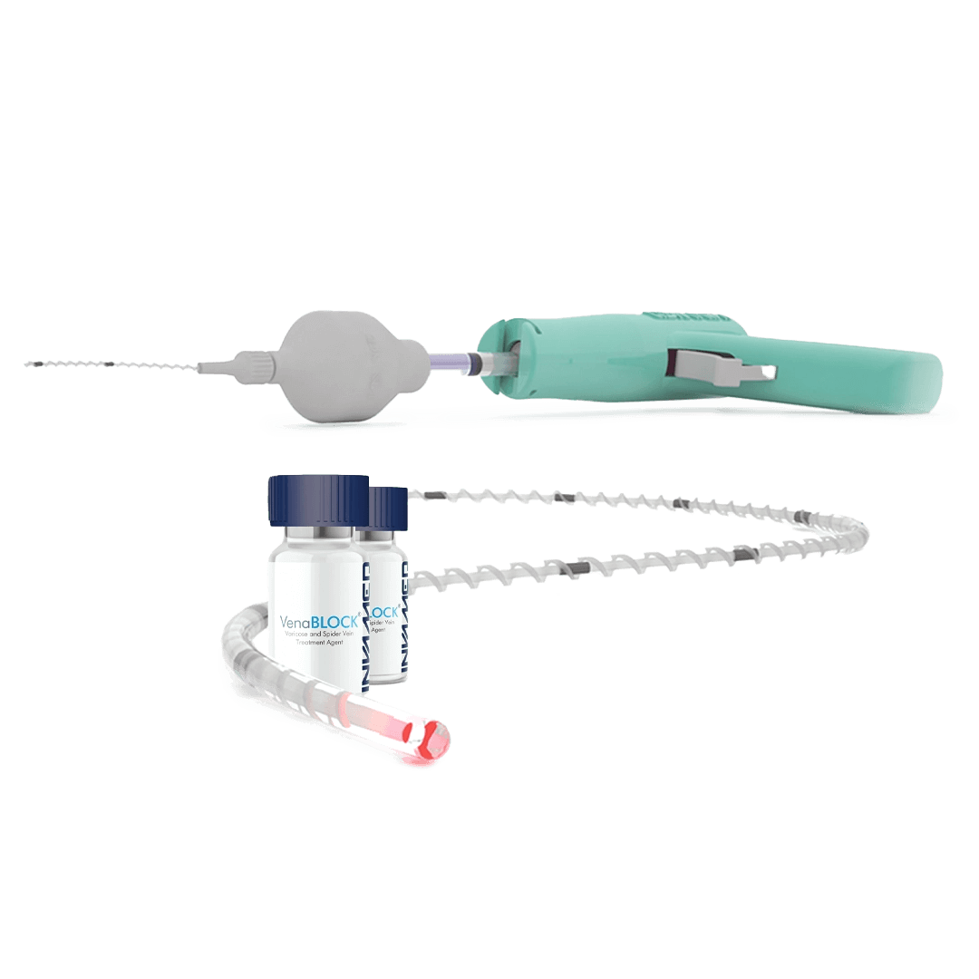 El sistema de cierre de venas varicosas VenaBlock™ es un sistema innovador de cierre venoso diseñado para el tratamiento eficaz de la insuficiencia venosa crónica. Utiliza un adhesivo médico de cianoacrilato que se aplica directamente dentro del segmento venoso disfuncional (VSM, VSP o venas perforantes), logrando un cierre inmediato mediante presión localizada.